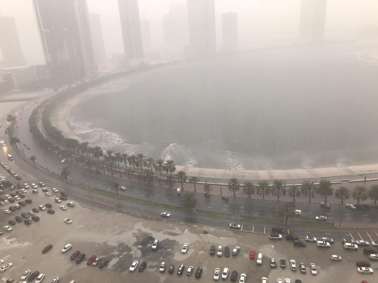 تشهد إمارة الشارقة منذ ساعات الصباح الباكر أمطارا تتراوح بين المتوسطة والغزيرة صاحبها انخفاض في درجات الحرارة مع تدني مستوى الروية بسبب الغيوم.
