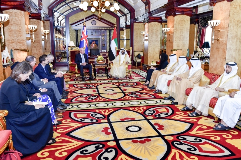 وقد رحب سموه بالضيف وتجاذب معه أطراف الحديث حول العلاقات التاريخية التي تربط دولة الإمارات بأستراليا خاصة ودول الكومنولث بصورة عامة وتطور هذه العلاقات عاماً بعد عام على مختلف المستويات وفي شتى المجالات الثقافية والسياحية والتجارية والعلمية وغيرها.