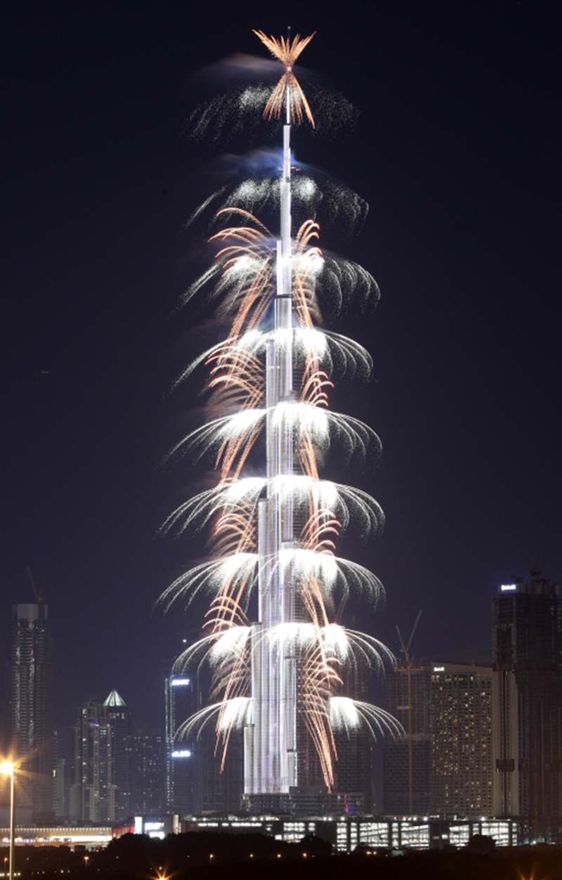 وذكرت صحيفة «تلغراف» البريطانية أن دبي أضاءت سماءها أعلى برج خليفة لمدة بلغت نحو 10 دقائق في عرض مشهود، وتدفق مئات الآلاف من السياح للتمتع بمشاهدته.