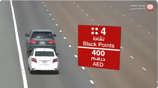 وحددت شرطة أبوظبي غرامة المخالفين بأربع نقاط سوداء وغرامة 400 درهم.