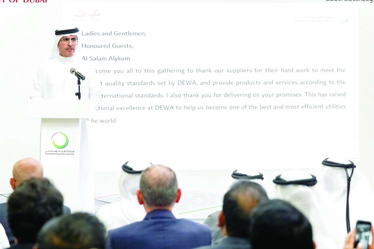 كرّم معالي سعيد محمد الطاير، العضو المنتدب الرئيس التنفيذي لهيئة كهرباء ومياه دبي، 35 من موردي الهيئة في فئات «الموردين الاستراتيجيين» و«الموردين الرئيسيين» و«الموردين الأساسيين» و«الموردين أعضاء مؤسسة محمد بن راشد لتنمية المشاريع الصغيرة والمتوسطة» وذلك تقديراً لجهودهم في الالتزام بأعلى معايير الجودة والمطابقة للمواصفات.