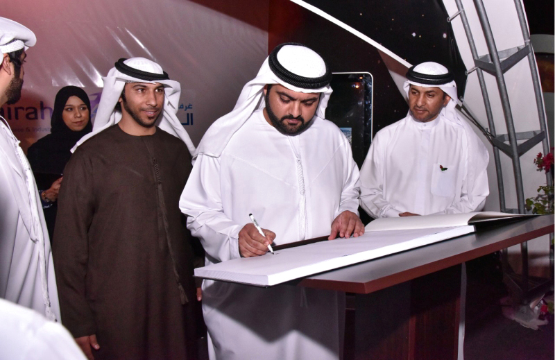 واطلع سمو ولي عهد الفجيرة على فعاليات الجهات المشاركة وطبيعة مشاريعهم الابتكارية، من خلال جولة سموه على المنصات التي تم تصميمها من عدة أقسام مستوحاة من الفضاء على شكل المجموعة الشمسية، حيث استمع من المشاركين فيها إلى طبيعة مشاركتهم ودورها في تسليط الضوء على المشاريع المستقبلية وابتكار حلول استباقية لتحديات الخمسين عاماً المقبلة.