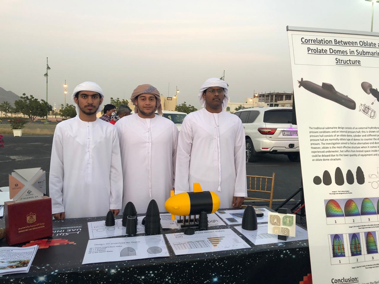 وجمعت منصة ابتكارات طلابية مشاريع مميزة حيث تحدث خليفة الزيودي من ثانوية التكنولوجيا بانه عمل مع اثنين من زملائه على التركيز على مياه البحر، وقال طموح دولتنا ان نصل بأفكارنا الى البعيد واستكشاف الجديد ووجدنا ان اعماق البحر تحمل من الاسرار والاكتشافات الامر الكثير مما جعلنا نصنع نموذجا لغواصة مبتكرة استغرقت منا وقتا واستطعنا تطويرها لتتحمل ضغطا واهتزازا اقل وبذلك تستطيع الوصول الى اعماق مياه البحر، حيث قام الطلبة الثلاثة بتطوير المقدمة وتصميمها على شكل بيضاوي لتكون حركتها اكثر ثباتا وعمقا وسهولة ، ويجدون ان مشروعهم له فائدة عسكرية .