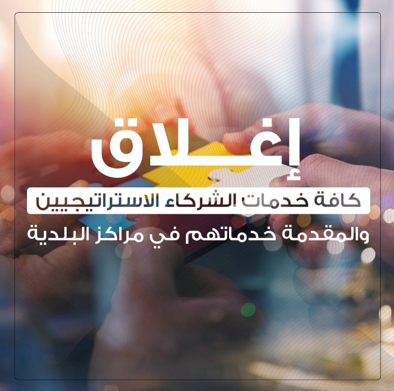 كما سيتم إغلاق منافذ خدمات الشركاء الاستراتيجيين والمقدمة خدماتهم في مراكز البلدية ومن خلال الدوائر الحكومية والمؤسسات الخاصة وتشمل: هيئة الطرق والمواصلات، وهيئة كهرباء ومياه دبي، والهيئة العامة للمعاشات والتأمينات، والهيئة الاتحادية للهوية والجنسية، و وزارة تنمية المجتمع، ومحاكم دبي /كاتب العدل/، و وزارة الموارد البشرية /تسهيل/، ومؤسسة محمد بن راشد للإسكان، والدائرة المالية، و وزارة الخارجية والتعاون الدولي، ومصرف الإمارات الإسلامي، واتصالات، وأمين الخدمات العقارية، ومركز آمر، وشركة دو، و أون تايم للخدمات الحكومية، وهايك واليتي لتأجير السيارات، و ترجمان لخدمات الترجمة القانونية، و المنارة للتسجيل العقاري، و الشركة الإسلامية للتمويل /آفاق/.