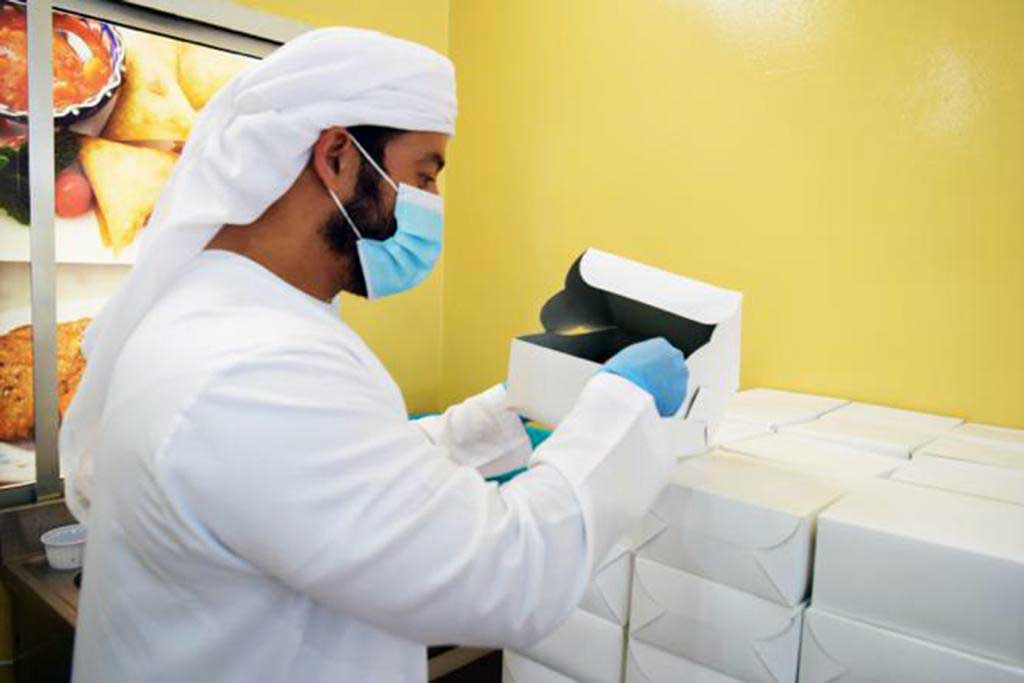 توزع مؤسسة حميد بن راشد النعيمي الخيرية 1000 وجبة غداء يومياً للمستفيدين من فئة ذوي الدخل المحدود بعجمان، بتبرع من معالي أحمد جمعة الزعابي وزير شؤون المجلس الأعلى للاتحاد وبالتعاون والتنسيق مع سعيد الزعابي مدير قاعة البيت متوحد.