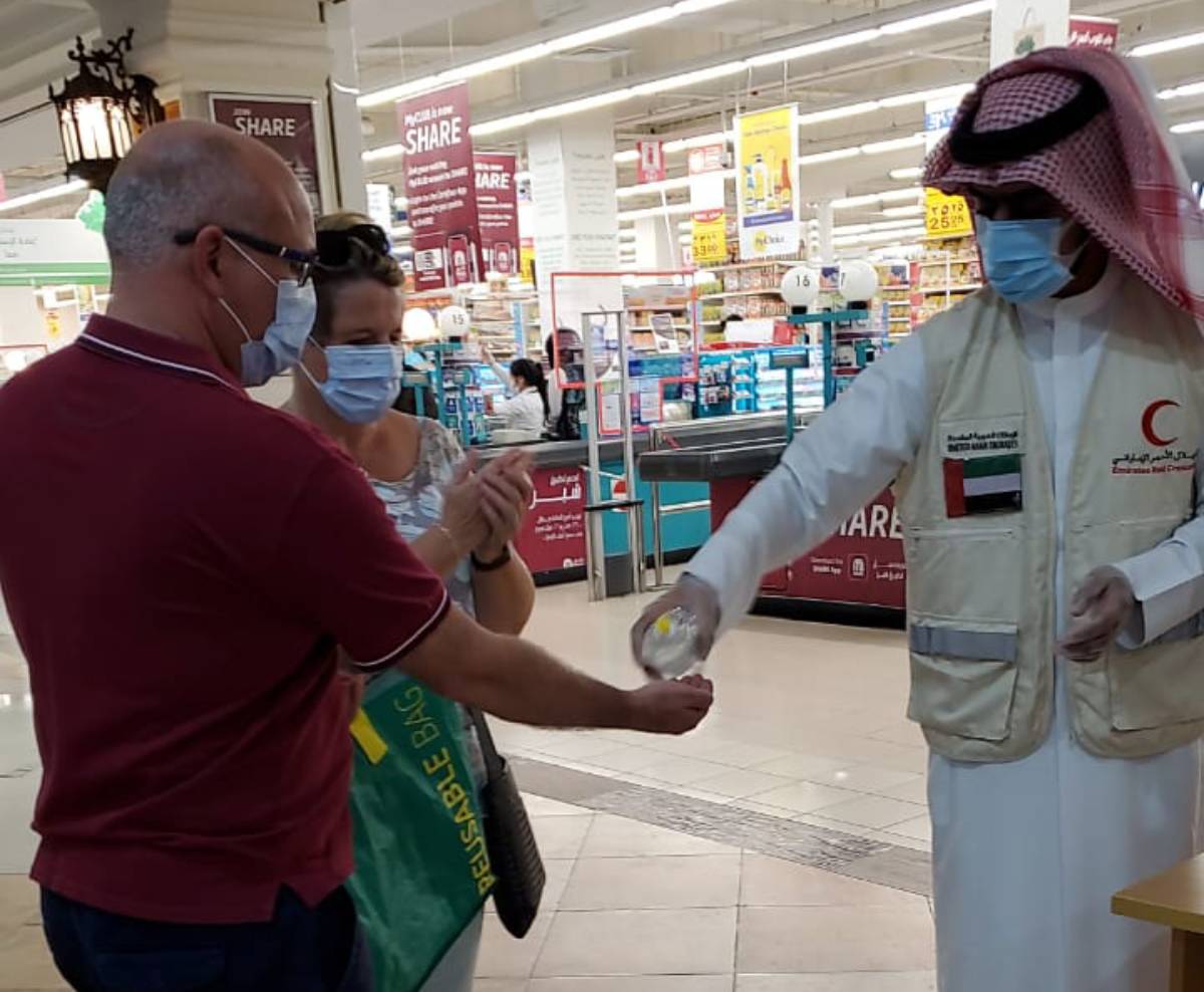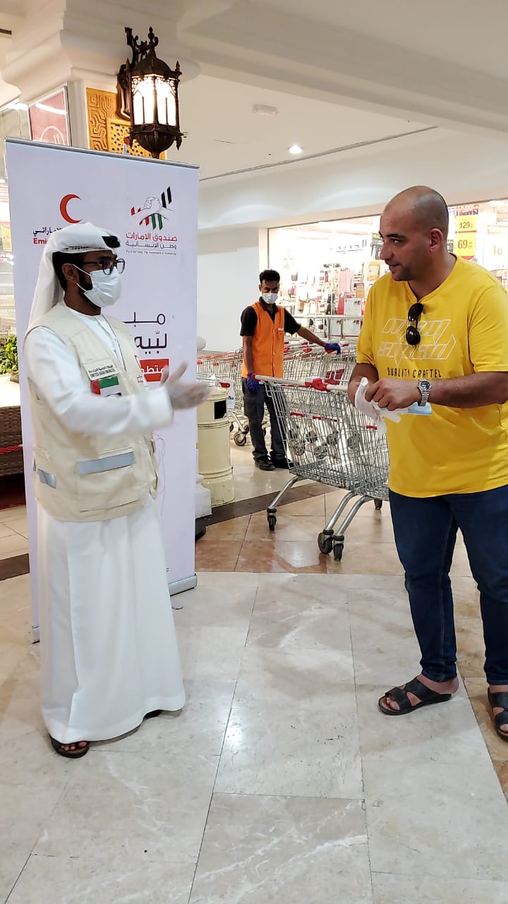 أطلقت هيئة الهلال الأحمر بفرعها في رأس الخيمة حملة "لبيه يا وطن" لتغطية 20 مركز تسوق في مناطق الإمارة، لتوعية أفراد المجتمع وقياس درجة الحرارة وتوزيع الكمامات والقفازات على مرتادي منافذ البيع في المراكز التجارية بالإمارة، بمشاركة 85 متطوعا تم تقسيمهم على فترة دوام تلك المنافذ.