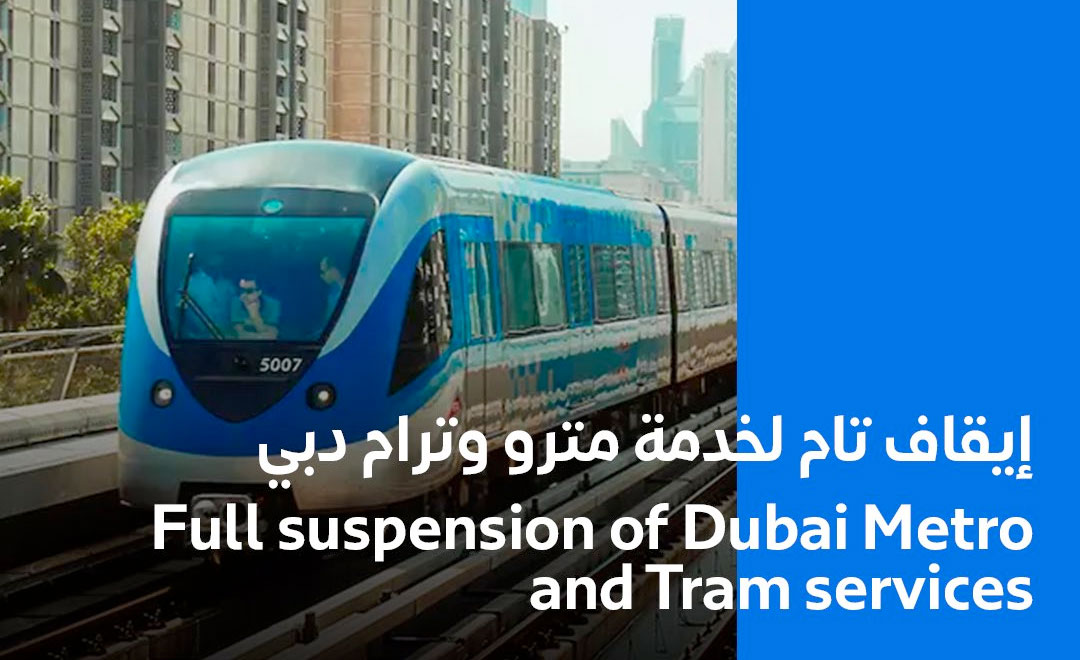 وأكدت الهيئة أن خدمة المترو والترام لن تكون متاحة خلال فترة التعقيم الشامل المُعلنة في دبي، في الوقت الذي تسعى فيه الهيئة لتوفير مختلف سبل الدعم الممكنة لكل أفراد المجتمع في هذه المرحلة الصعبة بما تتطلبه من تكاتف كافة الجهود، وتعاون الجمهور إلى المدى الأقصى لضمان التغلب على هذه الأزمة المؤقتة وتجاوزها في أسرع وقت ممكن.