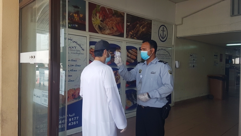 ورصدت جولة ميدانية لـ «البيان» في السوق، خلال الفترة الصباحية، تطبيق إجراءات احترازية مكثفة، تنفذها جمعية الصيادين، أبرزها إحكام الرقابة على بوابات الدخول والخروج الخاصة بالسوق بشكل مناسب، لمنع دخول المستهلكين بشكل عشوائي، ومنع دخول الأشخاص غير المرتدين للكمامات، إضافة إلى قياس درجة حرارة المستهلكين قبل الدخول، ومنع دخول أي مستهلك تزيد حرارته على 37.5 درجة، وتوفير القفازات للمستهلكين قبل الدخول، إلى جانب وضع مواد التعقيم عند بوابة الدخول والخروج، وإلزام جميع الزوار بالتعقيم.