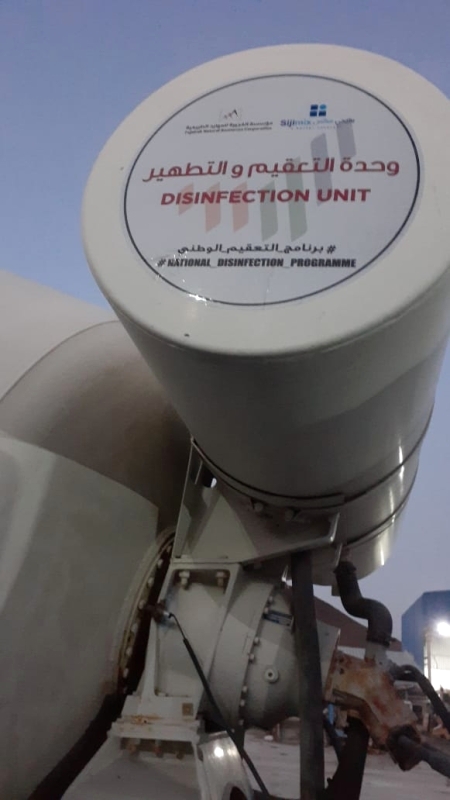 وسخرت الشركة 40 شاحنة كبيرة وكافة آلياتها ومعداتها الضخمة من جميع فروع الشركة، والمزودة بالمواد المعتمدة لعمليات الرّش، والتي أصبحت تنتجها الشركة، طبقاً لأفضل المواصفات وأعلى المعايير الصحيّة، لخدمة البرنامج الوطني للتعقيم، كما وفرت كوادر بشرية مدربة ومؤهلة، ومزوّدين بجميع وسائل السلامة .