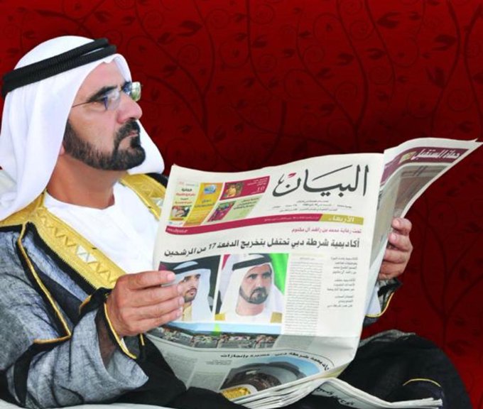 هنأ صاحب السمو الشيخ محمد بن راشد آل مكتوم، نائب رئيس الدولة رئيس مجلس الوزراء حاكم دبي، رعاه الله، صحيفة "البيان" بذكرى صدورها الأربعين، مثنياً سموه على أدائها لمهمتها المنوطة بها، والثقة التي نالتها من المواطن والمسؤول.