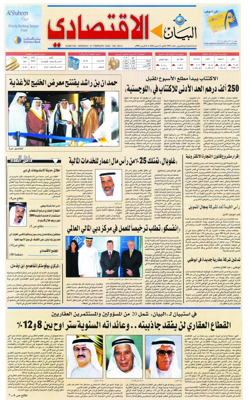 حين صدرت «البيان» كان سيد المشهد على صفحاتها التجليات والانجازات الاقتصادية لدبي والإمارات. فهي منذ التأسيس انطلقت في خط مستقيم لم ينقطع، عنوانه الشراكة في إثراء المشهد الاقتصادي الوطني، فأصبحت «بيان» لرؤية الإمارات قيادة وشعباً، وعين القارئ، وحلقة وصل بين القراء والمسؤولين، وشاهد مساهم في التنمية الاقتصادية والاجتماعية، حاملة بين طياتها كل صباح وجبة دسمة من المحتوى الإعلامي عنوانه الموضوعية والدقة والمصداقية.منذ صدور العدد الأول، كانت أول صحيفة عربية تخصص صفحتين ثم ثلاثاً فأربعاً للمال والأعمال، وارتفعت مع تعاظم نهضة دبي والإمارات إلى 10 صفحات، قبل أن يستقل الشأن الاقتصادي بملحق خاص مع بداية الألفية الجديدة ليواكب نهضة وتطور دولة الإمارات، فكان رفيقاً لقصص النجاح والصعود للقطاعات والمؤسسات الاقتصادية، ومنبراً موثوقاً لمجتمع الأعمال والمال، وعيناً للقارئ ودليلاً للمستهلك، حتى أصبح «البيان الاقتصادي» مرجعأً موثوقاً لدى مجتمع الأعمال والمستهلكين، وليحصد جوائز النجاح من العديد من الجهات المهنية والتقديرية.