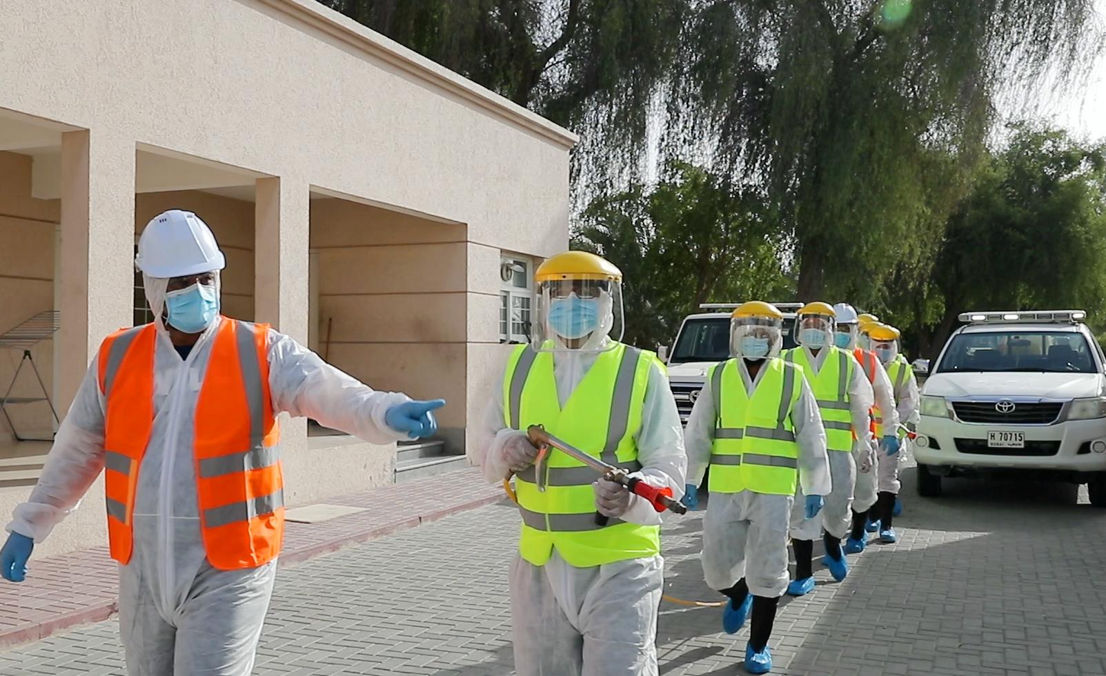 قامت بلدية دبي بحملة تعقيم واسعة ومكثفة شملت سكن العمال بالمزارع والعِزَب في عدة مناطق من إمارة دبي، وتضمنت الحملة التحقق من تطبيق معايير الصحة والسلامة واتباع العمال للممارسات الصحية المعتمدة وتقديم المعلومات التوعوية لهم سواء بشأن سبل الوقاية من فيروس كورونا المستجد (كوفيد-19) أو غيرها من تدابير السلامة والصحة العامة، وذلك في سياق الخطة الشاملة التي أعدتها البلدية وتغطي العديد من المناطق في الإمارة والمرافق والأماكن العامة والخاصة باستخدام أجهزة ومعدات مبتكرة وبتقنيات عالية.