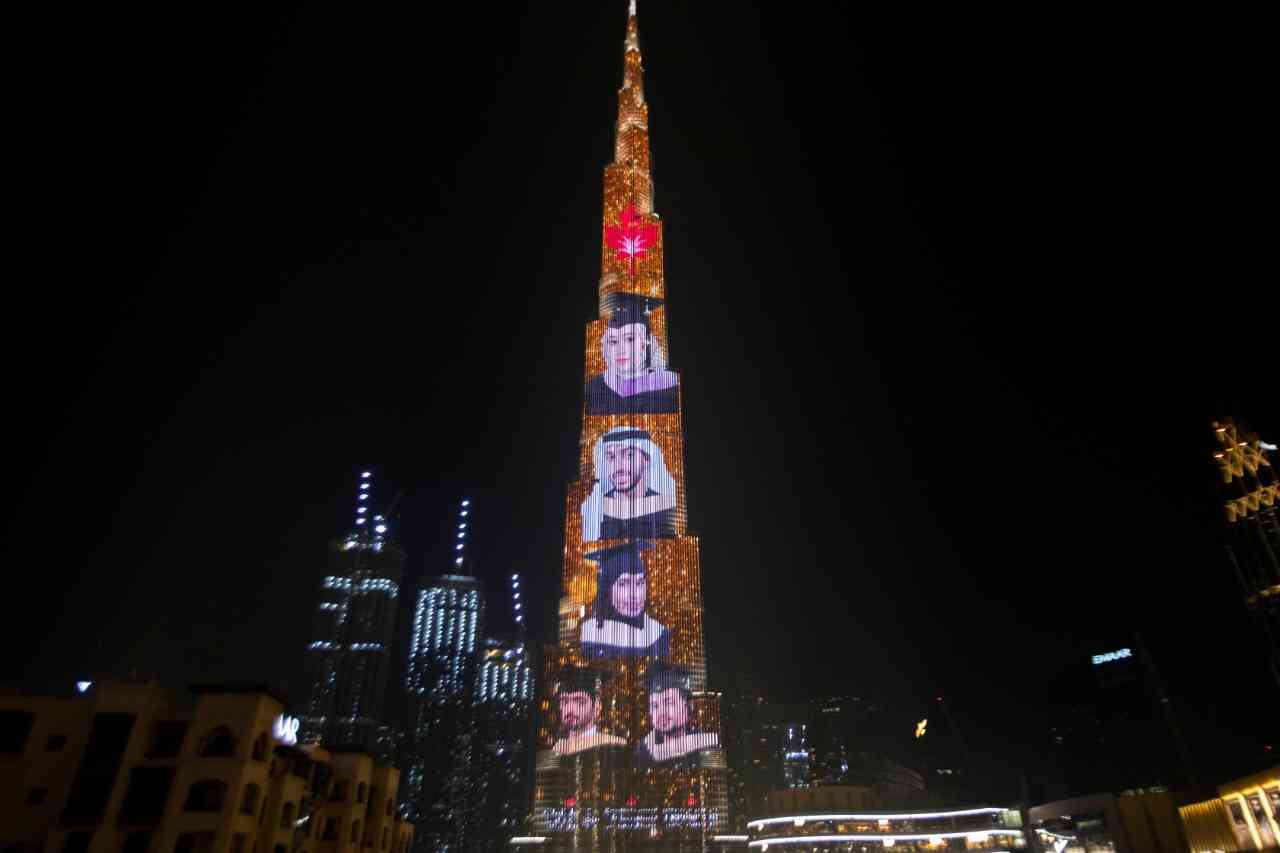 تحت رعاية وبمشاركة معالي الشيخ نهيان بن مبارك آل نهيان وزير التسامح، احتفلت الجامعة الكندية بدبي بالدفعة العاشرة من خريجيها تحت شعار "جمال التحمل"، بطريقة فريدة وغير مسبوقة، من خلال عرض صورًا لخريجيها على أعلى مبنى في العالم، وهو برج خليفة عبر حفل افتراضي نظمته مساء أمس.