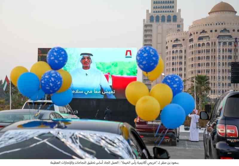 جاء ذلك خلال كلمة وجهها سموه لهم في حفل التخرج الأول من نوعه في الإمارة الذي أقيم بحضور الشيخة آمنة بنت سعود بن صقر القاسمي، رئيس مجلس إدارة أكاديمية رأس الخيمة، ورئيس مجلس إدارة مكتب الاستثمار والتطوير في رأس الخيمة، وبحضور الخريجين مع عائلاتهم من داخل السيارات في مبادرة فريدة تعكس الحرص على الالتزام بإجراءات التباعد الاجتماعي.