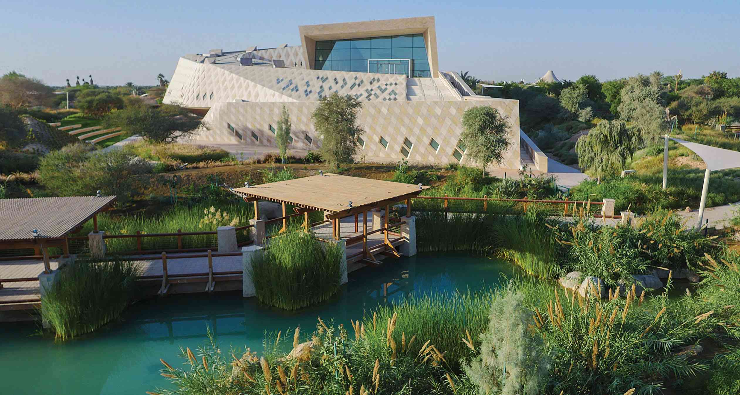 ونقل مركز الشيخ زايد لعلوم الصحراء، الحياة الطبيعية والثقافية والتاريخية لدولة الإمارات، بكل تفاصيلها الدقيقة، وحصل على جائزتين، هما اللآلئ الخمس في الاستدامة، ضمن درجات التقييم بنظام اللؤلؤ للاستدامة في مرحلة التصميم، والجائزة البلاتينية من «لييد»، وهي القيادة في الطاقة والتصميم البيئي، وهي شهادة التصنيف الدولية، التي تقيم تصميم وبناء وتشغيل المباني الخضراء عالية الأداء والجودة.