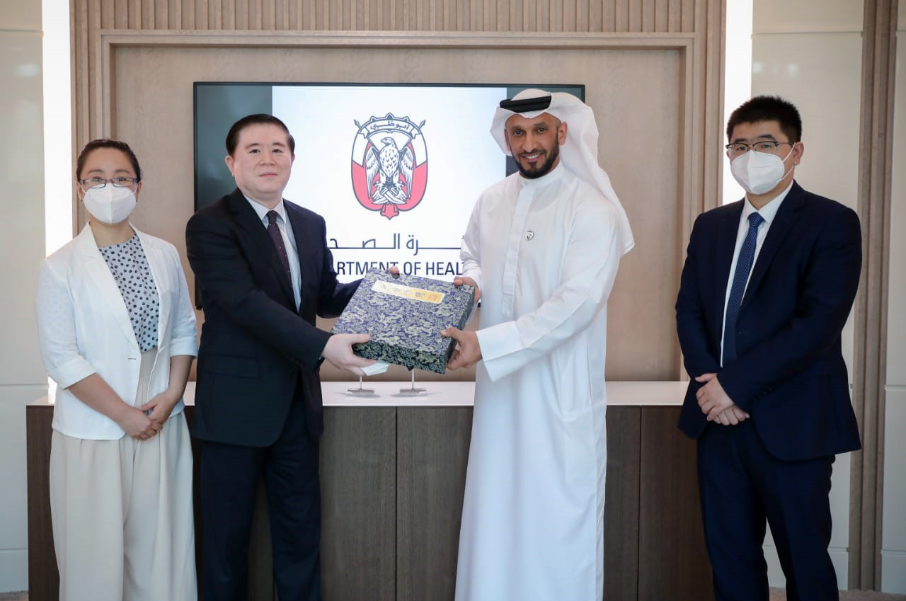 التقى كل من معالي الشيخ عبدالله بن محمد آل حامد رئيس دائرة الصحة أبوظبي وسعادة الدكتور جمال محمد الكعبي وكيل دائرة الصحة أبوظبي بالإنابة وفداً من مجموعة "تشاينا ناشونال بيوتك جروب" الصينية ومجموعة "جي 42" لبحث الخطوات المستقبلية المزمع اتخاذها كجزء من المرحلة الأولى للتجارب السريرية الثالثة للقاح المحتمل لفيروس كوفيد-19.