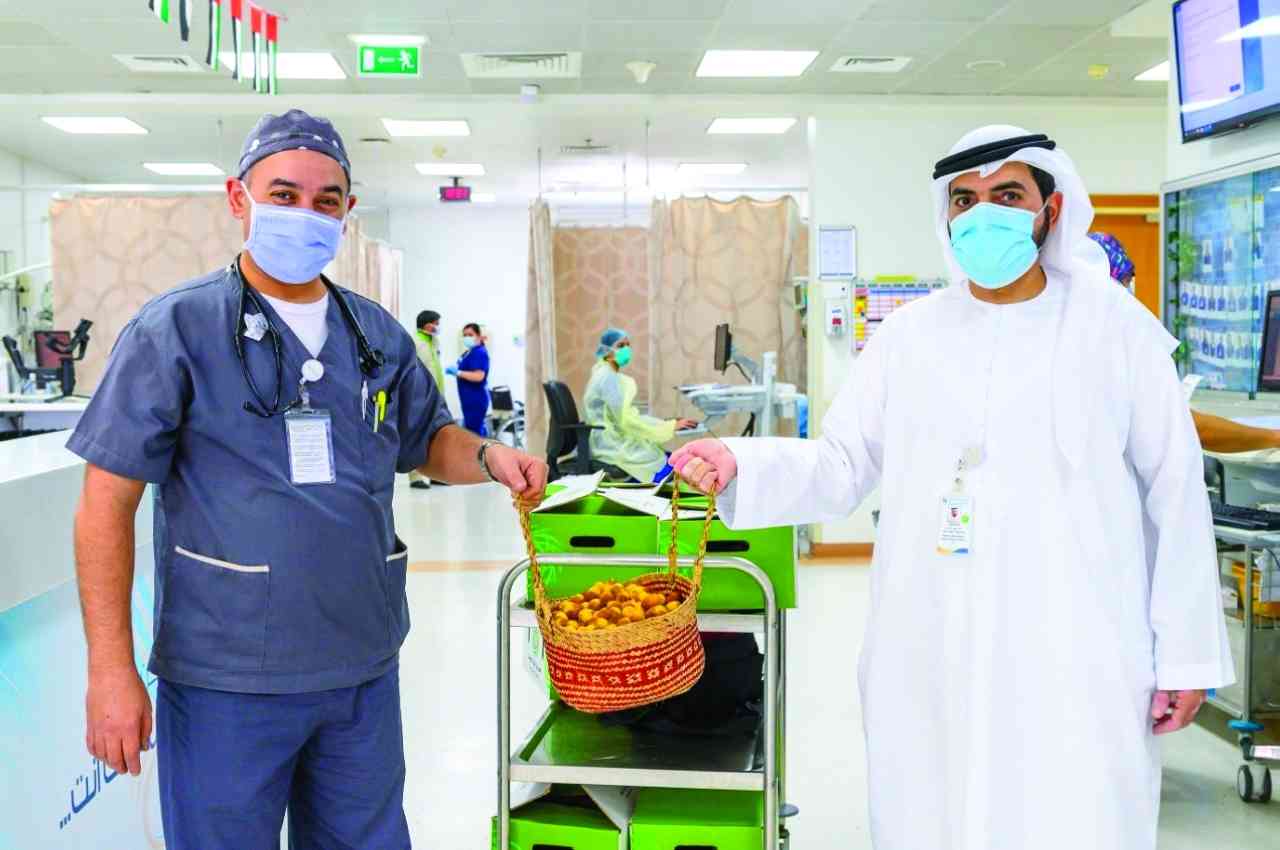 وحول مبادرة لجنة إدارة المهرجانات والبرامج الثقافية والتراثية بأبوظبي، توزيع طن رطب على كوادر خط الدفاع الأول العاملين في مستشفيات الظفرة، قال عيسى سيف المزروعي، نائب رئيس لجنة إدارة المهرجانات والبرامج الثقافية والتراثية بأبوظبي، إن خط دفاعنا الأول يعتبر وسام شرف لكل من يقيم على أرض الإمارات من مواطنين ومقيمين، وحرصنا على توجيه رسالة شكر لهم من خلال 100 مخرافة مقدمة من مزارع منطقة الظفرة بإجمالي وزن يبلغ 1000 كيلوغرام (طن)، تصلهم إلى مواقع عملهم بالتنسيق مع مستشفيات منطقة الظفرة.