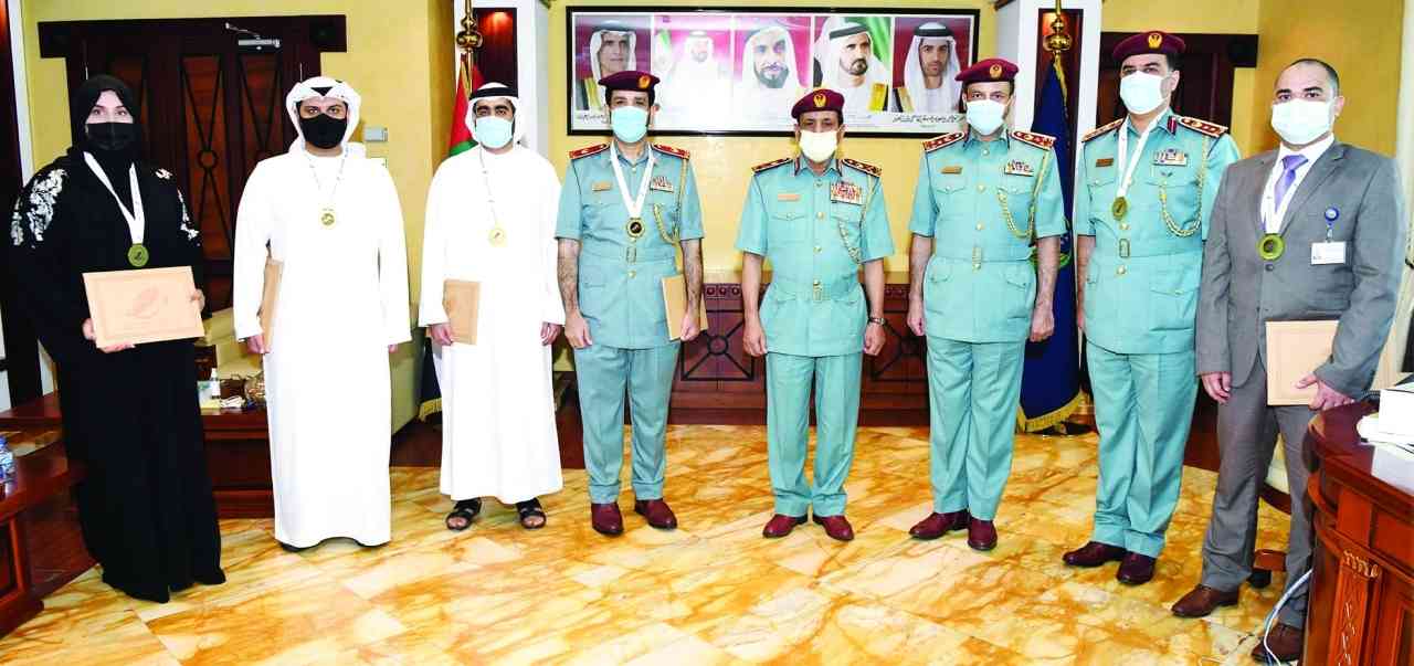 منح اللواء علي عبد الله بن علوان النعيمي، قائد عام شرطة رأس الخيمة، جميع مرتب الشرطة شارة التميز الوظيفي تثميناً لجهودهم في فوز القيادة بجائزة الجهة الحكومية الرائدة على مستوى الإمارة وذلك ضمن جائزة صقر للتميز الحكومي للعام 2020.