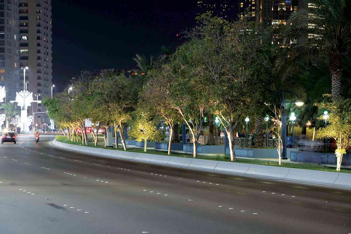 أنجزت بلدية مدينة أبوظبي مشروعاً استهدف الارتقاء بالمظهر الجمالي للواجهة البحرية لأبوظبي على كورنيش أبوظبي بطول وصل إلى 4.5 كيلومترات من خلال تركيب إنارة تجميلية للأشجار الممتدة على طول الممشى البحري لكورنيش أبوظبي، وذلك ضمن خطة الأعمال التطويرية المعتمدة للعام الجاري 2020.