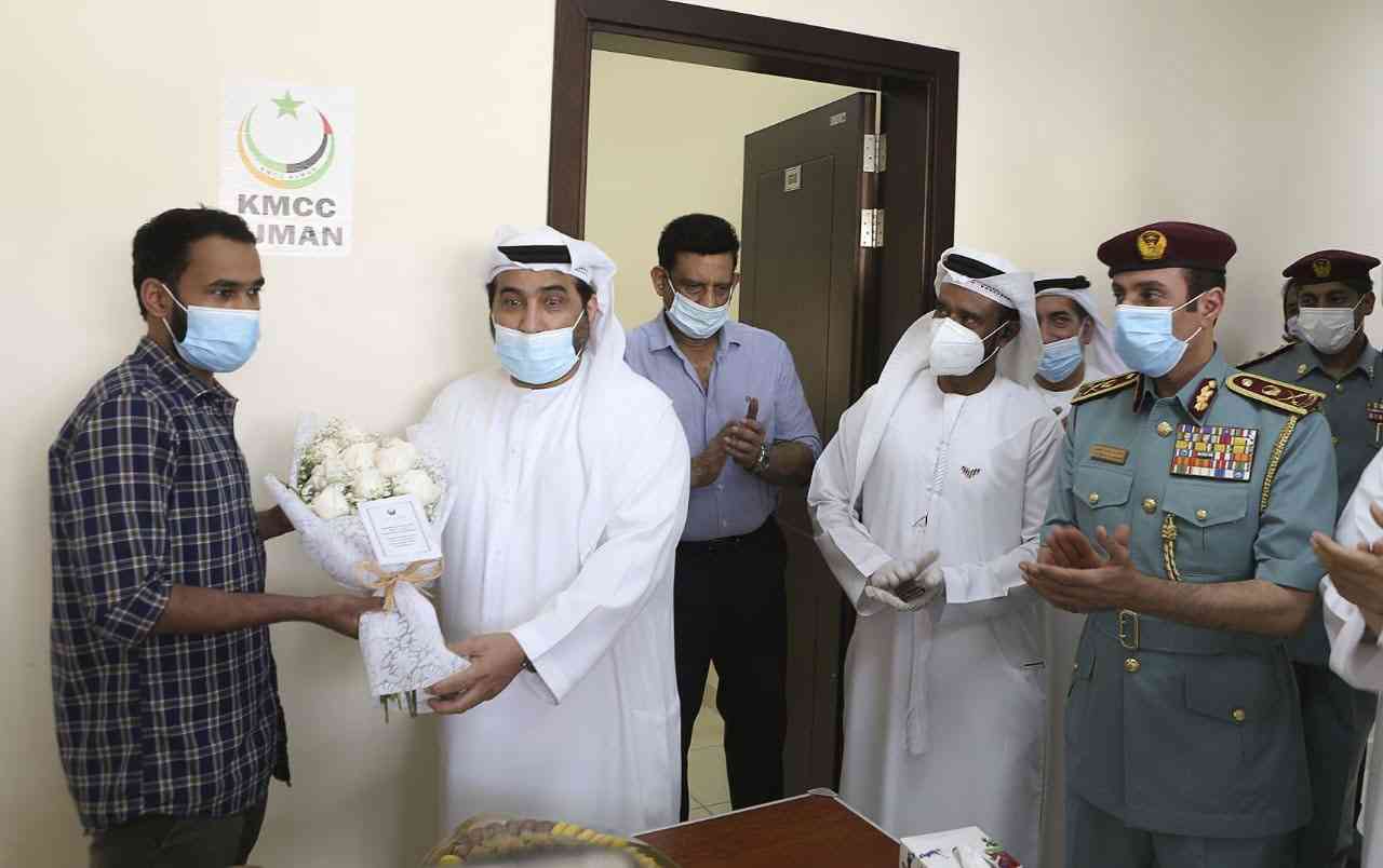 واحتفل قائد عام شرطة عجمان مع الحضور بخروج العامل ومغادرته المبنى المخصص لعزل العمال في منطقة الصناعية بعجمان، وتسلم العامل المتعافي بطاقة التهنئة وباقة الورد والحلوى، وسط أجواء من الفرحة الغامرة بحضور ضباط وأفراد من شرطة عجمان، والطاقم الطبي والأطباء والممرضين ومتطوعي مركز KMCC، الذي اعتنى بالمصابين من كيرلا في الدولة.
