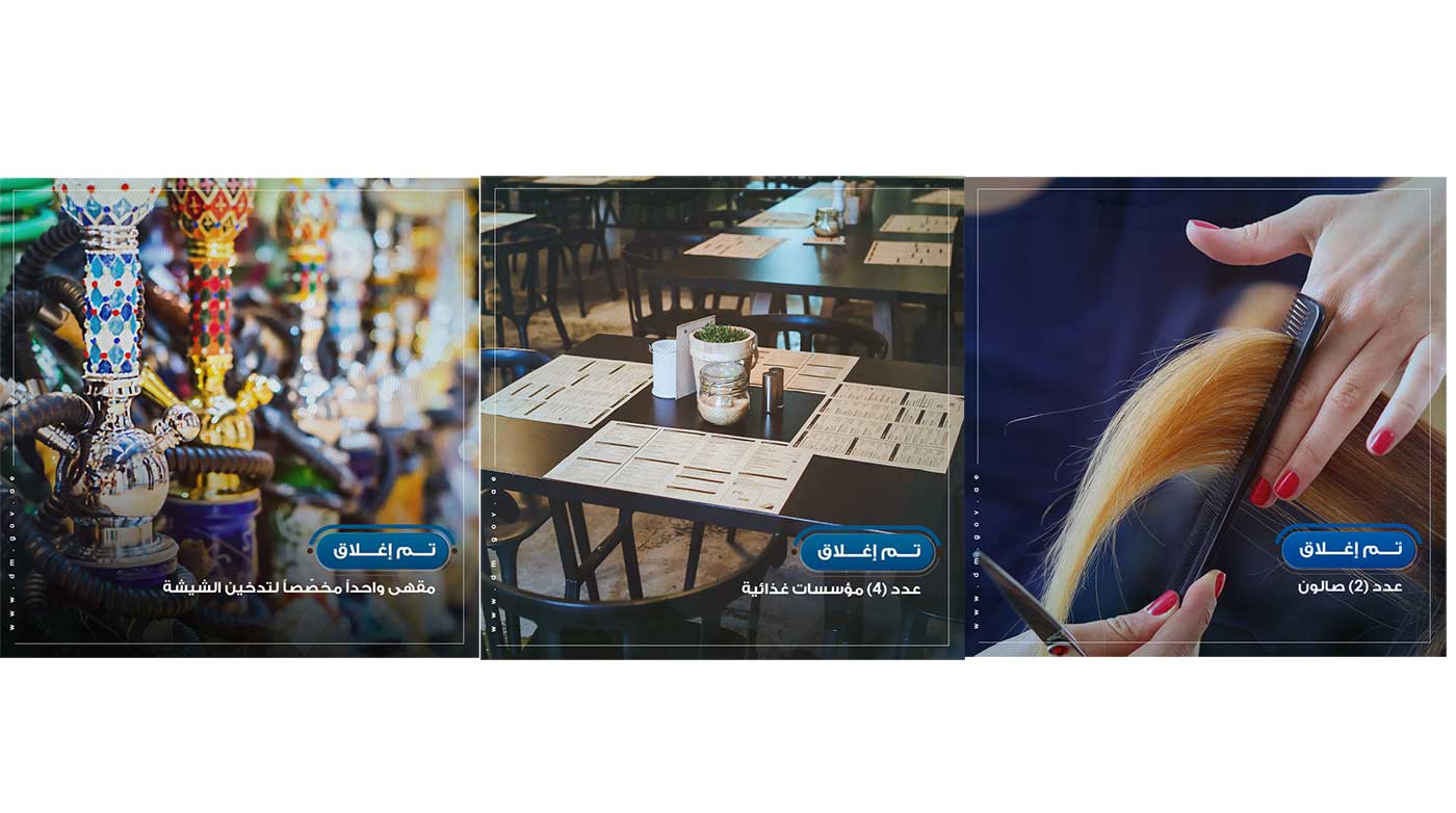 كما أغلقت البلدية صالونَين للتجميل في منطقة القصيص الثانية ومنطقة وادي الصفا الخامسة، إضافة إلى مقهى واحداً مخصّصاً لتدخين الشيشة في منطقة مرسى دبي، وذلك لعدم التزامها بالتدابير الاحترازية اللازمة.