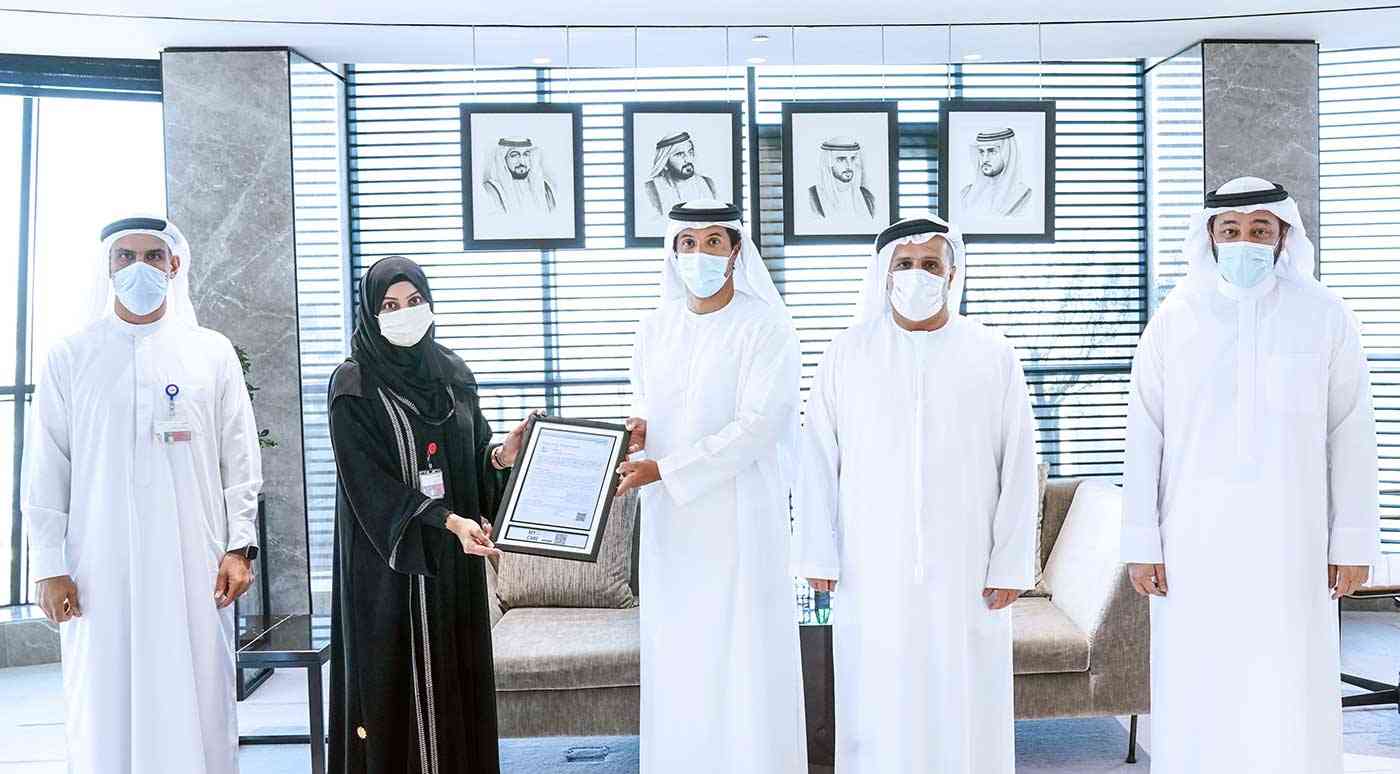 وتسلم معالي مطر محمد الطاير، المدير العام ورئيس مجلس المديرين في الهيئة، بحضور سعادة هلال سعيد المري، المدير العام لدائرة السياحة والتسويق التجاري بدبي "دبي للسياحة" الشهادة من فريق العمل في قطاع الاستراتيجية والحوكمة المؤسسية في الهيئة.