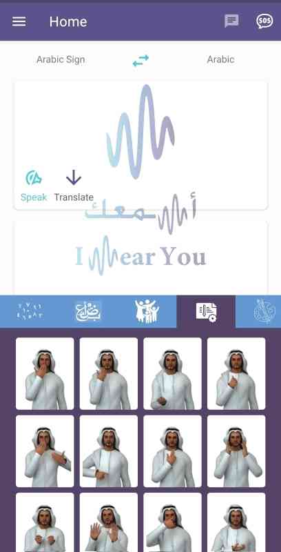 حيث يترجم لغة الإشارة إلى نصوص وكلمات ويترجم كذلك النصوص والكلمات إلى لغة الإشارة، فاتحاً للصم البكم باباً للتواصل والتفاعل مع المجتمع، لاغياً حاجز اختلاف اللغة الذي يمنعهم من المشاركة المجتمعية؛ ومشجعاً كون لغة الإشارة لغة عالمية تستحق أن تترجم، وبذلك تبدأ ميزات التطبيق بأنه متاح للاستخدام المهني والشخصي، حيث يستطيع الفرد وكذلك الشركات الاستفادة منه.