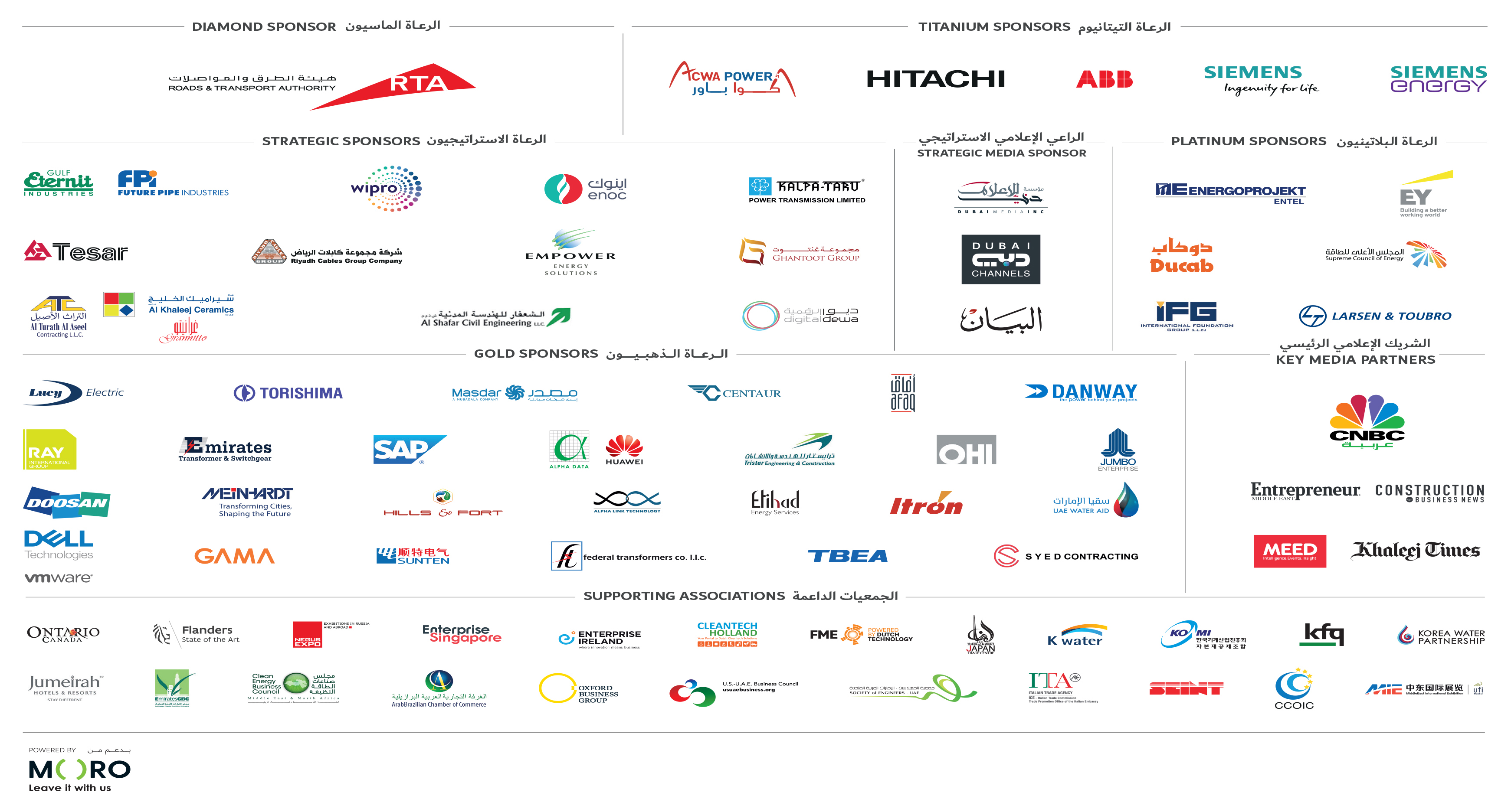 ويحظى المعرضان برعاية هيئة الطرق والمواصلات في دبي في فئة الراعي الماسي؛ وكل من شركة «سيمنس»، وشركة «أكوا باور»، وشركة «إيه بي بي» وشركة «هيتاشي إيه بي بي باور جريدز» في فئة الراعي التيتانيوم؛ ومؤسسة دبي للإعلام في فئة الراعي الإعلامي الاستراتيجي. كما يحظى المعرض برعاية 13 جهة في فئة الراعي الاستراتيجي، و6 جهات في فئة الراعي البلاتيني، و26 جهة في فئة الراعي الذهبي، و5 مؤسسات في فئة الشريك الإعلامي الرئيسي.