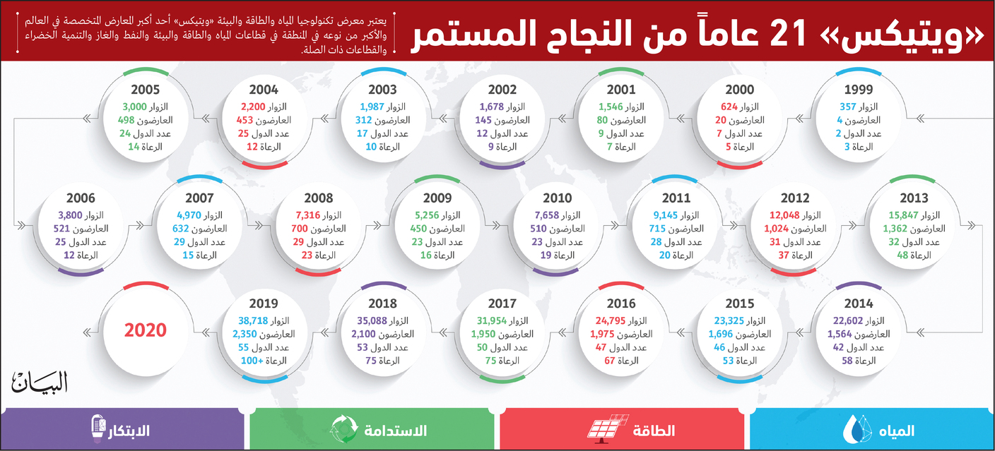 ويستمر المعرضان اللذان يقدمان بنسخة افتراضية ثلاثية الأبعاد محايدة للكربون، وهي الأولى من نوعها على مستوى منطقة الشرق الأوسط وشمال أفريقيا، حتى الأربعاء الموافق لـ 28 أكتوبر الجاري بمشاركة 1076 شركة من 52 دولة حول العالم. ودعت الهيئة الجمهور لزيارة المعرض الافتراضي من خلال الحاسب المكتبي أو الحاسب المحمول، أو التطبيق الذكي «WETEX»، ويمكن للزوار التسجيل عبر الموقع الإلكتروني www.wetex.ae.