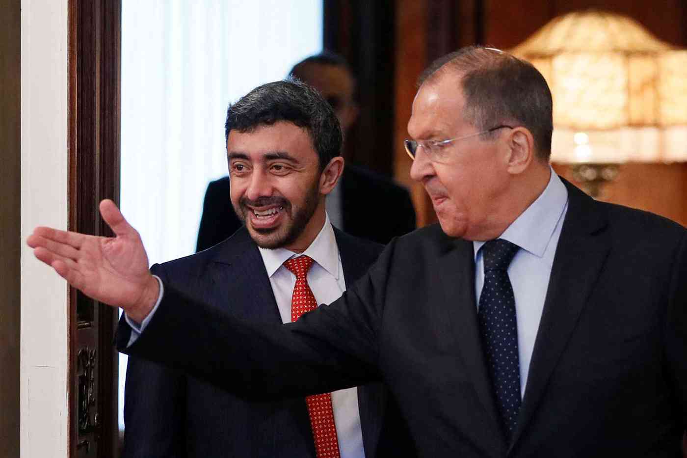 أكد سمو الشيخ عبدالله بن زايد آل نهيان وزير الخارجية والتعاون الدولي أن دولة الإمارات وجمهورية روسيا الاتحادية ترتبطان بعلاقات استراتيجية شاملة وشدد على العمل المشترك بين البلدين الصديقين من أجل جعل منطقتنا ليست فقط آمنة و لكن أيضا مزدهرة وعصرية.