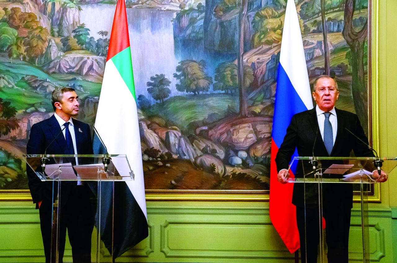 وكان سمو الشيخ عبدالله بن زايد آل نهيان وزير الخارجية والتعاون الدولي قد عقد قبيل المؤتمر الصحفي اجتماعاً مشتركاً مع سيرجي لافروف وزير خارجية روسيا الاتحادية.