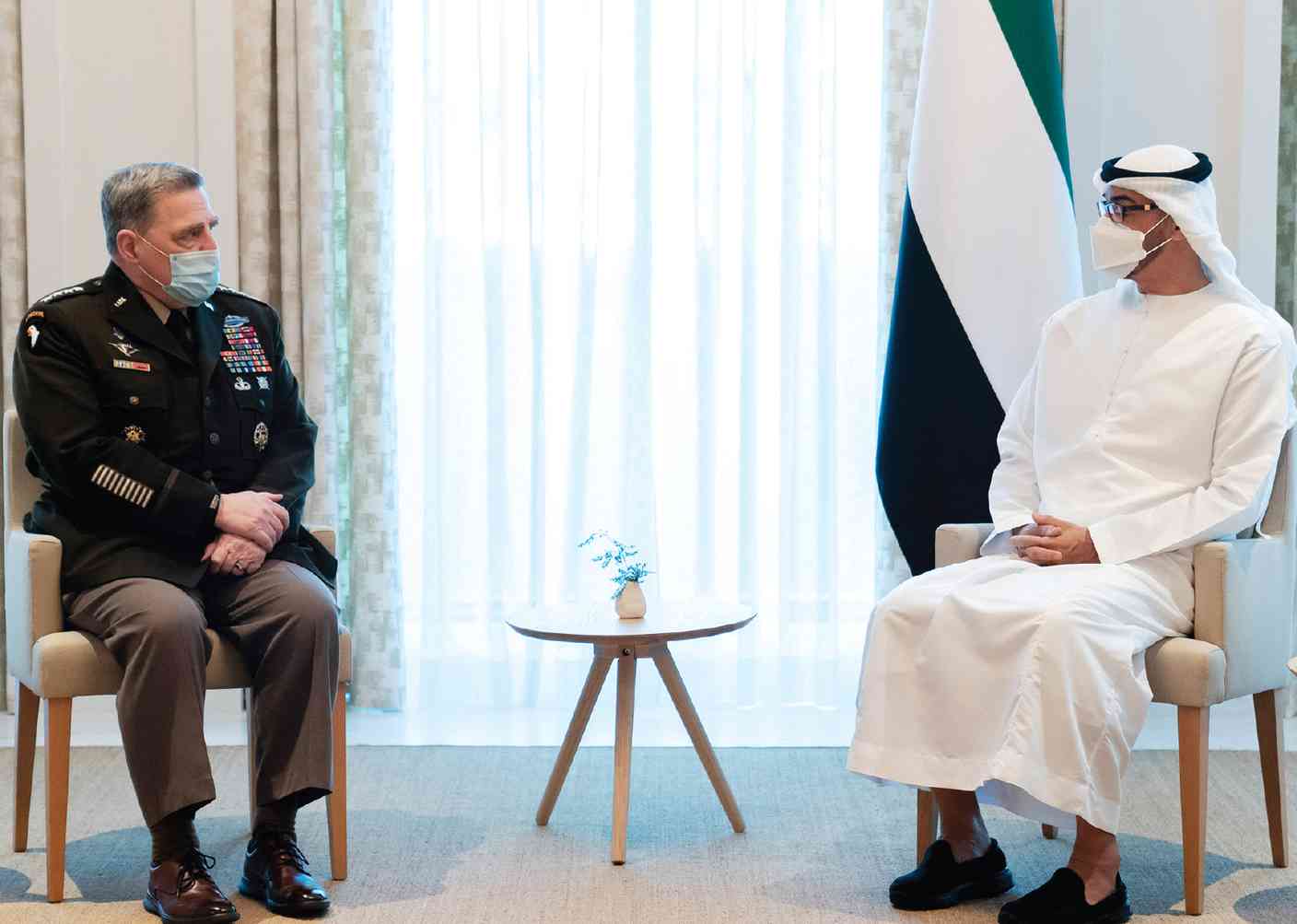 استقبل صاحب السمو الشيخ محمد بن زايد آل نهيان ولي عهد أبوظبي نائب القائد الأعلى للقوات المسلحة، في قصر الشاطئ في أبوظبي، الجنرال مارك ميلي رئيس هيئة الأركان المشتركة الأمريكية.