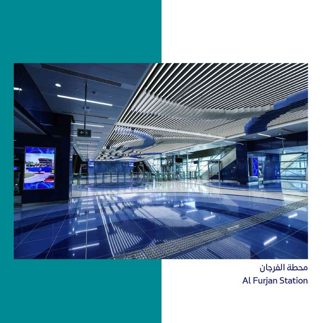 وتبلغ مساحة محطة ديسكفري جاردنز 8600 متر مربع، وطولها 168 متراً، وطاقتها الاستيعابية 6770 راكباً في الساعة خلال أوقات الذروة، ونحو 125 ألف راكب طاقة استيعابية للمحطة يوميا، وتضم المحطة رصيفين للصعود إلى القطارات، وأربعة مواقف للحافلات، و20 موقفاً لصعود ونزول الركاب ومركبات الأجرة، وموقفين لأصحاب الهمم، كما تضم أربعة محلات للاستثمار التجاري مساحتها 149 متراً مربعاً، والمحطة الرابعة على مسار 2020 هي محطة الفرجان، وتبلغ مساحتها 8400 متر مربع، وطولها 168 متراً، وطاقتها الاستيعابية 6770راكباً في الساعة خلال أوقات الذروة، ونحو 125 ألف راكب طاقة استيعابية للمحطة يوميا، وتضم المحطة رصيفين للصعود إلى القطارات، وأربعة مواقف للحافلات، و20 موقفاً لصعود ونزول الركاب ومركبات الأجرة، وموقفين لأصحاب الهمم، كما تضم أربعة محلات للاستثمار التجاري مساحتها 149 متراً مربعاً.