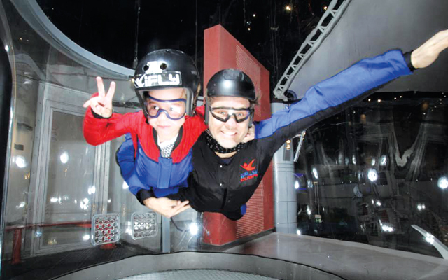 في مركز «آي فلاي» والواقع في منطقة «بلاي نيشن» في مردف سيتي سنتر يبدو كل شيء مختلفا، فعلى الرغم من أن بوابة المركز تبدو عادية، إلا أنها تخفي أشياء كثيرة خلفها، وقد أتاحت إدارة المركز لمن هم خارج المركز متابعة ما يجري في أنفاق الهواء، ورؤية طرق التحليق المختلفة والحركات التي قد يؤديها المتواجدون في تلك الأنفاق.