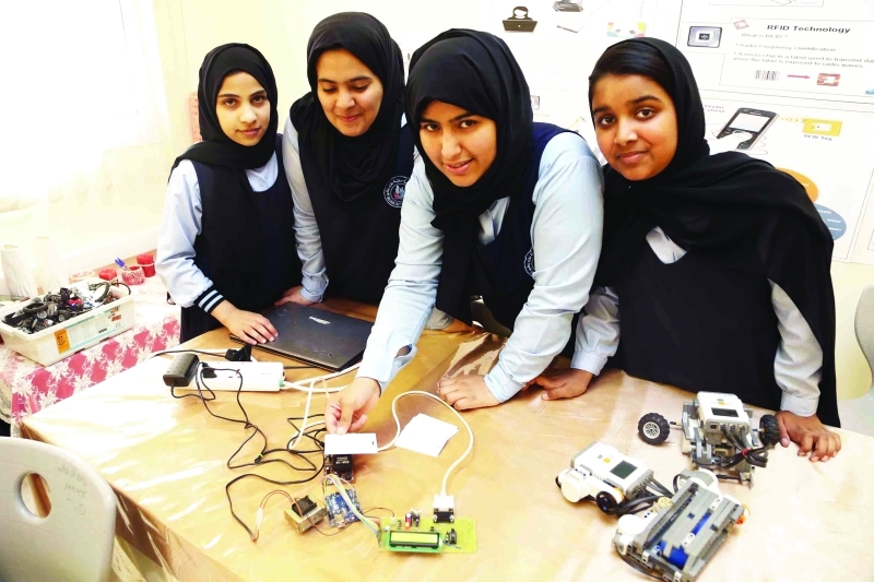 التقت «البيان» بالطالبات اللاتي ابتكرن الجهاز التقني بنظام ( RFID) والذي يطلق على نظام التحقق عن بعد على هوية شيء ما كالإنسان أو غيره طالما كان مثبتا به ما يعرف ببطاقة (RFID tag)، ووجود جهاز يسمى قارئ (RFID reader) في الموقع الذي يمر به الإنسان.