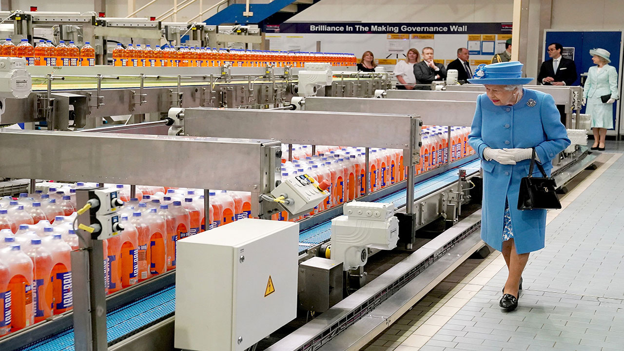 قامت ملكة بريطانيا إليزابيث الثانية والأمير وليام بجولة في مصنع للمشروبات الغازية في إسكتلندا أول امس الإثنين. وزارت الملكة وحفيدها مصنع "إيه جي بار" في كمبرناولد، حيث تنتج الشركة صودا "إيرن برو"، لافتتاح منشأة المعالجة الجديدة الخاصة بها.