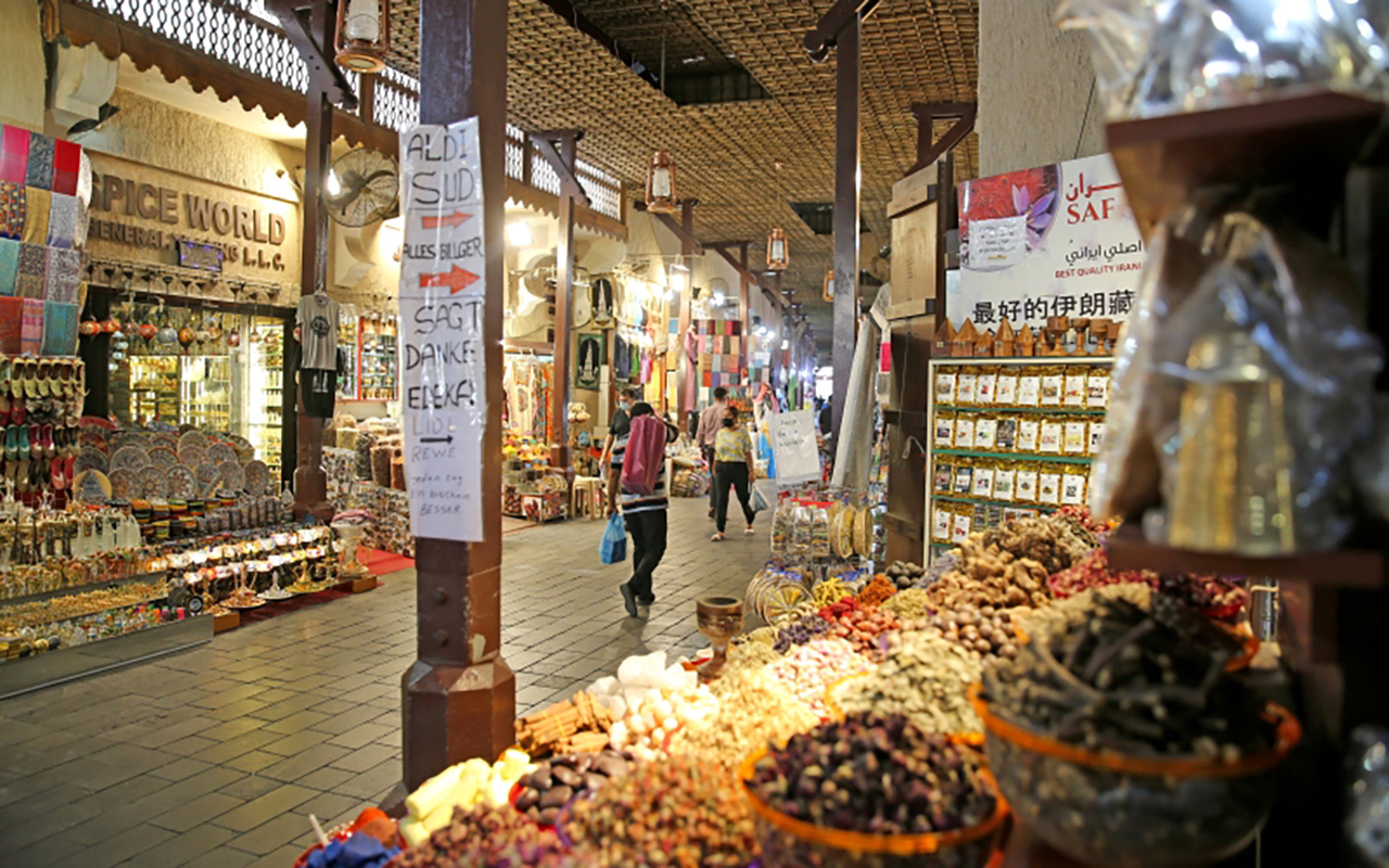 ويحتفظ السوق بسحره الخاص نظراً لموقعه الجذاب والمطل على خور دبي في مشهد مهيب للعبارات والسفن الخشبية، المحملة بالبضائع من الرحلات البحرية من وإلى أفريقيا وشبه القارة الهندية والخليج العربي، ما جعلها مركزاً عالمياً للتسوق، ومكاناً للبيع والشراء، والتبادل التجاري، حيث صنعت المعاملات التجارية الواسعة شهرة المدينة عالمياً، ورفعت من مكانتها التجارية وصيتها الذائع، واعُتبرت نموذجاً للأسواق العربية وحجراً أساسياً في تاريخ التجارة، بعد أن ساعدت زراعة التوابل في مناطق خارج عن أرضها الأصلية على تقلص الاحتكارات وخفض قيمتها حتى أصبحت التوابل اليوم دون جنسية معينة.