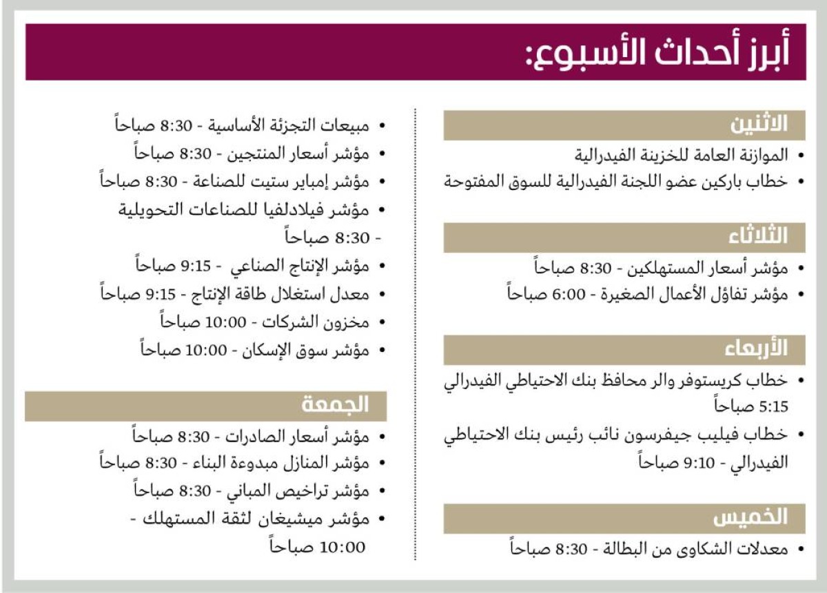 وسيكون للأرقام الاقتصادية المنتظرة هذا الأسبوع دور حاسم في توضيح الصورة، إذ تصدر غداً بيانات مؤشر أسعار المستهلكين لشهر أبريل، ما يوفر قراءة جديدة لاتجاهات التضخم، بينما تكشف بيانات مبيعات التجزئة، الخميس، عن حالة الإنفاق الاستهلاكي.