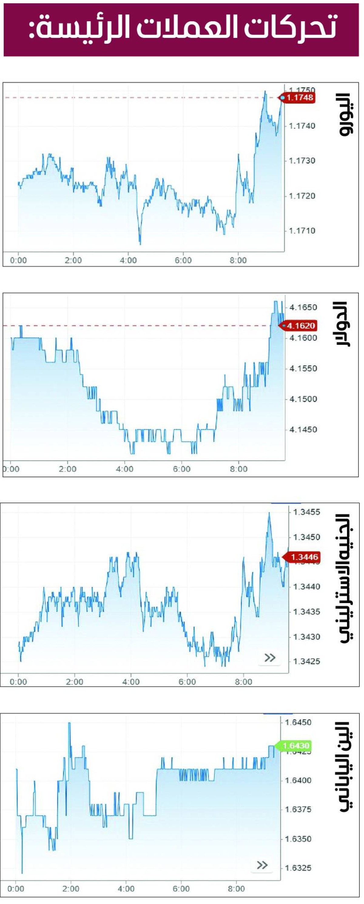 وارتفع اليورو 0.28 % إلى 1.1731 دولار، في حين صعد الجنيه الإسترليني 0.27 % إلى 1.3439 دولار.