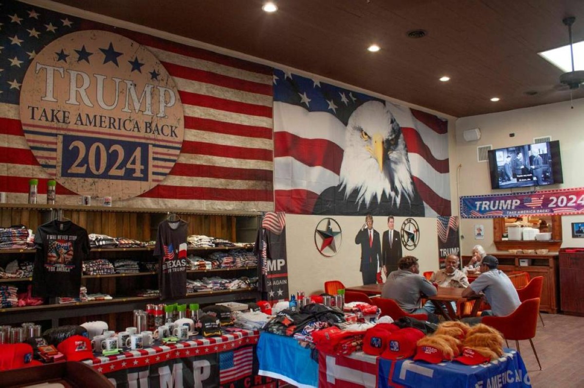 ويحضر طيف دونالد ترامب في كل مكان في هذا المطعم، الذي يضم حوالي عشر طاولات، من خلال الصور والمجسمات الكرتونية واللافتات والقبعات، وحتى القمصان المعروضة للبيع، والتي تعود إلى حملته الانتخابية عام 2024.