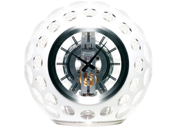 شفافية تداعب الأكتاف بالبريق، الزجاج يلتقي المعدن، الحرفية الفنية تجمع بين طبيعة المعدن المتشددة مع حساسية الكريستال وهشاشته: هذه هي الخصائص التي تميّز ساعة المنضدة آتموس هيرمِس. ومن خلال إعطاء مضمون مادي لواقع غير ملموس، تقيم تلك الرابطة القوية بين الجنس البشري وبيئته مع مبدأ ساحر أبدي ألا وهو: الزمن.
