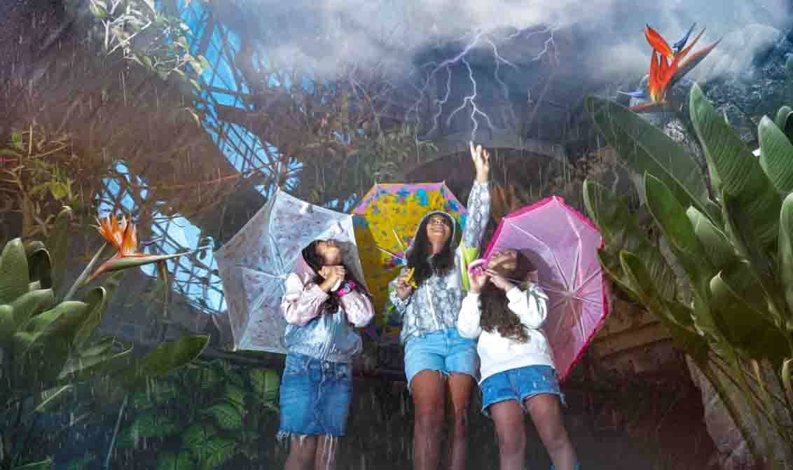وتستقبل «ذا جرين بلانيت دبي»، الغابة الاستوائية المطيرة الداخلية الوحيدة في منطقة الشرق الأوسط، ضيوفها من جميع الأعمار خلال عيد الأضحى وحتى 20 يونيو لاستكشاف أسرار القبة البيولوجية البديعة التي تحتضن أكثر من 3000 من الحيوانات والنباتات المختلفة من جميع أنحاء العالم. وسيكون الضيوف على موعد مع عرض العاصفة الرعدية داخل القبة البيولوجية يومياً.