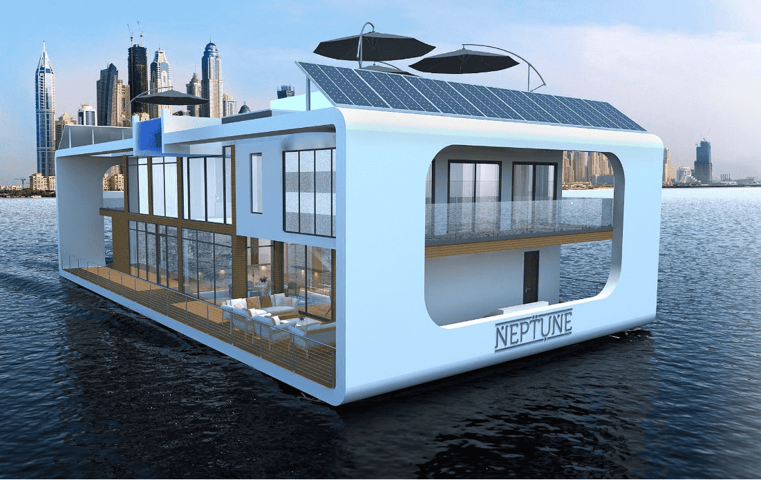 ويتألف المنتجع الفاخر من فندق محاط بستة منازل عائمة صنعت جميعها مجهزةً لتنفصل وتبحر بشكل مستقل. كما اعتمد التصميم الموقع من علامة "أستون مارتن" المميزة الزجاج في الأرضيات والأثاث، وأضفت الكماليات الفاخرة لمسةً تجعل الإقامة لا تنسى. أضف إلى أن الشركة رمت لبناء منتجع صديق للبيئة بديل عن المساكن العائمة على المياه وعملت على تجهيزه بأنظمة ذكية أوتوماتيكية، وفلاتر هواء ذاتية التعقيم، وألواح للطاقة الشمسية وأنظمة مدمجة لإعادة تدوير للنفايات.