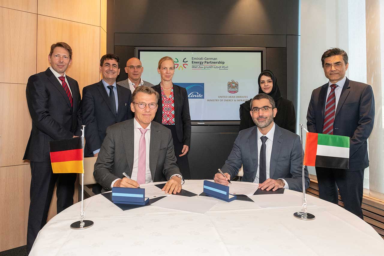 أبرمت وزارة الطاقة والبنية التحتية، وشركة "Linda" الألمانية، مذكرة تفاهم، بهدف عقد شراكة استراتيجية طويلة المدى قادرة على تطوير مشاريع طموحة داعمة للاستراتيجية الوطنية للطاقة 2050 ومبادرة الإمارات الاستراتيجية لتحقيق الحياد المناخي بحلول 2050 .