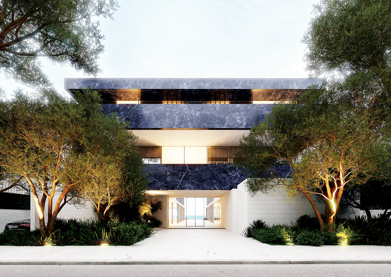 ويتكون كل واحد من المنازل الفخمة التي تم طرحها من أربعة طوابق (طابق سفلي وآخر أرضي وطابقين علويين)، كما يضم ثماني غرف ومجلساً وسبا وغرفة للسينما وصالة رياضية فاخرة مزودة المعدات الحديثة. ويأتي تصميم هذه المنازل الفخمة وفق مفهومين معماريين، وهما: الأرض (46,648.2 قدماً مربعة) والماء (45,927.24 قدماً مربعة).