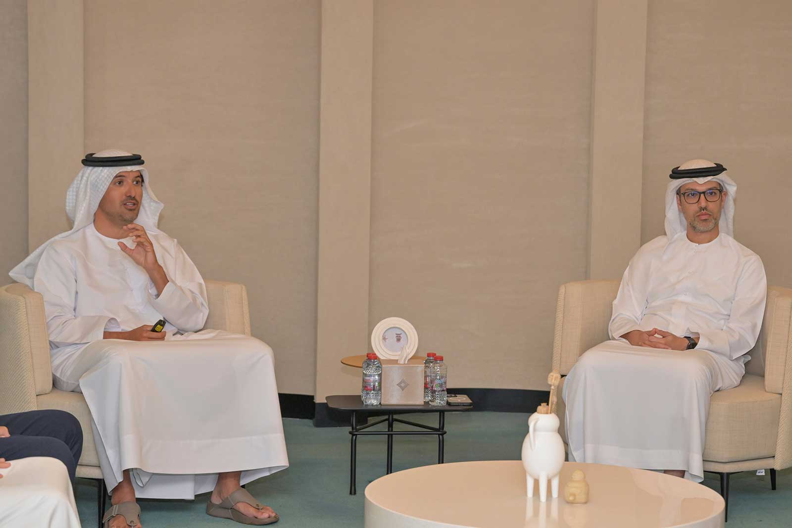 وقدم المرّي، خلال اللقاء، عرضاً للخطوط العريضة ومستهدفات الأجندة الاقتصادية لإمارة دبي، موضحاً أنها ستضم 100 مشروع تحولي ومستهدفات اقتصادية إجمالية تبلغ 32 تريليون درهم خلال العشرة أعوام المقبلة، والعمل على مضاعفة تجارة دبي الخارجية لتبلغ أكثر من 25 تريليون درهم، عبر استثمار الموقع الاستراتيجي المتفرد والمتميز لإمارة دبي، وبنيتها التحتية المتطورة لكي تظل الوجهة المفضلة للاستثمار وكبرى الشركات العالمية. علاوة على إضافة 400 مدينة لخارطة التجارة الخارجية، وإطلاق مخطط دبي للصناعة الخضراء والمستدامة، وإطلاق ممرات دبي الاقتصادية المستقبلية في عدة قارات.