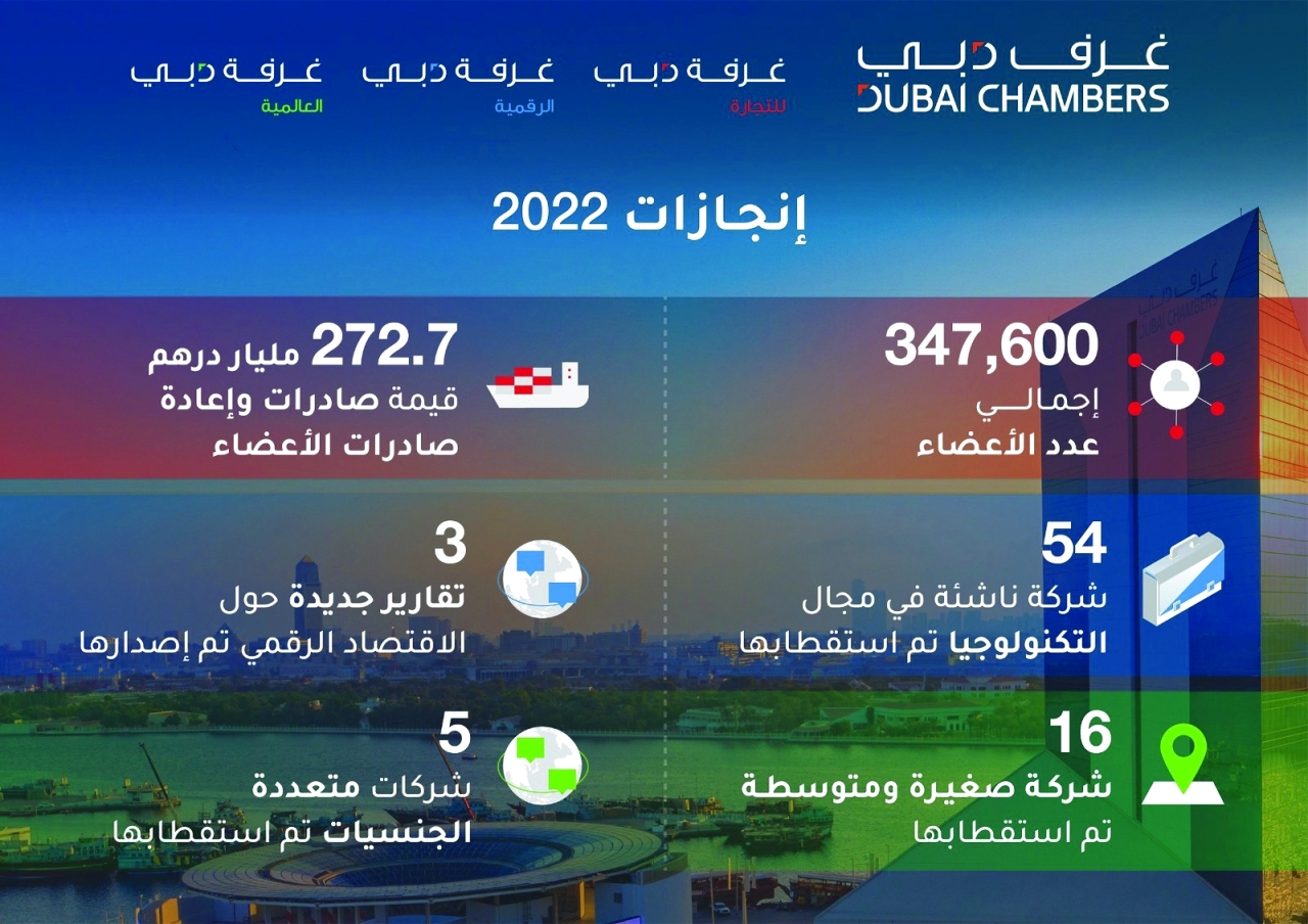 بلغ عدد الشركات الجديدة التي انضمت لعضوية غرفة تجارة دبي، إحدى الغرف الثلاث العاملة تحت مظلة غرف دبي، 56 ألف شركة في عام 2022، وهو رقم قياسي سنوي على صعيد الأعضاء الجدد، ليبلغ العدد الإجمالي لأعضاء الغرفة 347,6 ألف شركة، بنسبة نمو بلغت 20% على أساس سنوي، ما يعكس جاذبية دبي وتنامي بيئة أعمالها.