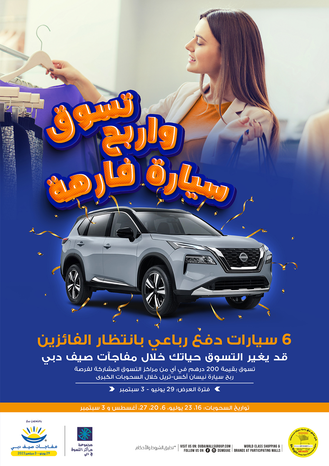 وتجذب مفاجآت صيف دبي سنة بعد سنة المقيمين والزوار بتجارب لا مثيل لها. حملة «تسوق واربح سيارة» التابعة لمجموعة مراكز التسوق في دبي ستكون قوة جذب للمتسوقين، حيث ستُضفي مستوى لا يضاهى من التشويق، والترقب على المشهد التجاري.