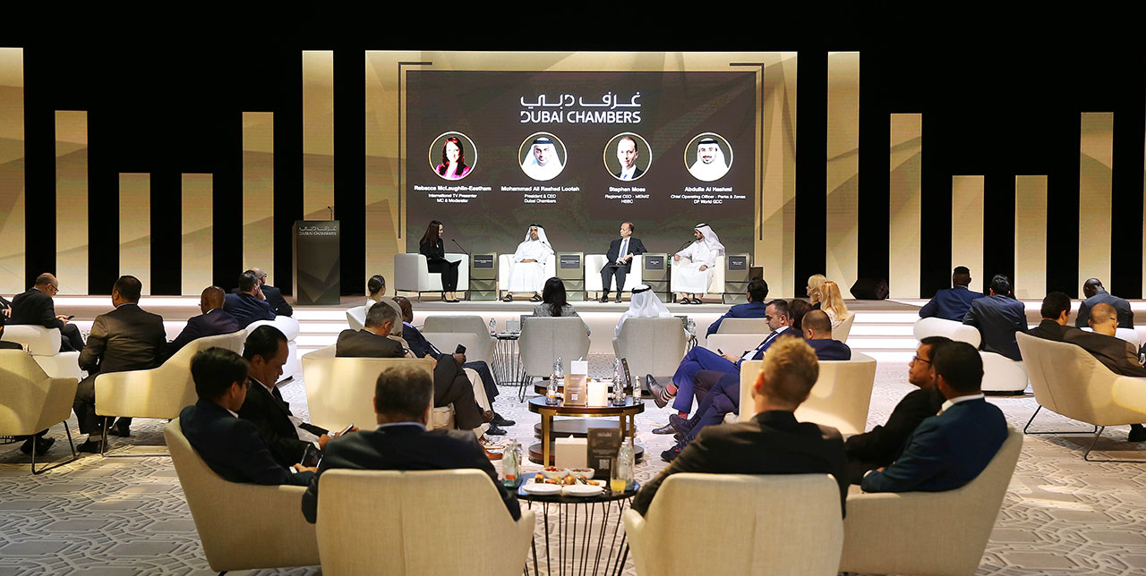 وتضمن "لقاء السلك الدبلوماسي 2023" جلسة حوارية شارك فيها كل من محمد علي راشد لوتاه، مدير عام غرف دبي؛ وعبد الله الهاشمي، المدير التنفيذي للعمليات- المجمّعات والمناطق الحرة في موانئ دبي العالمية "دي بي ورلد"؛ وستيفن موس، الرئيس التنفيذي الإقليمي لمنطقة الشرق الأوسط وشمال أفريقيا وتركيا في مجموعة "إتش إس بي سي".