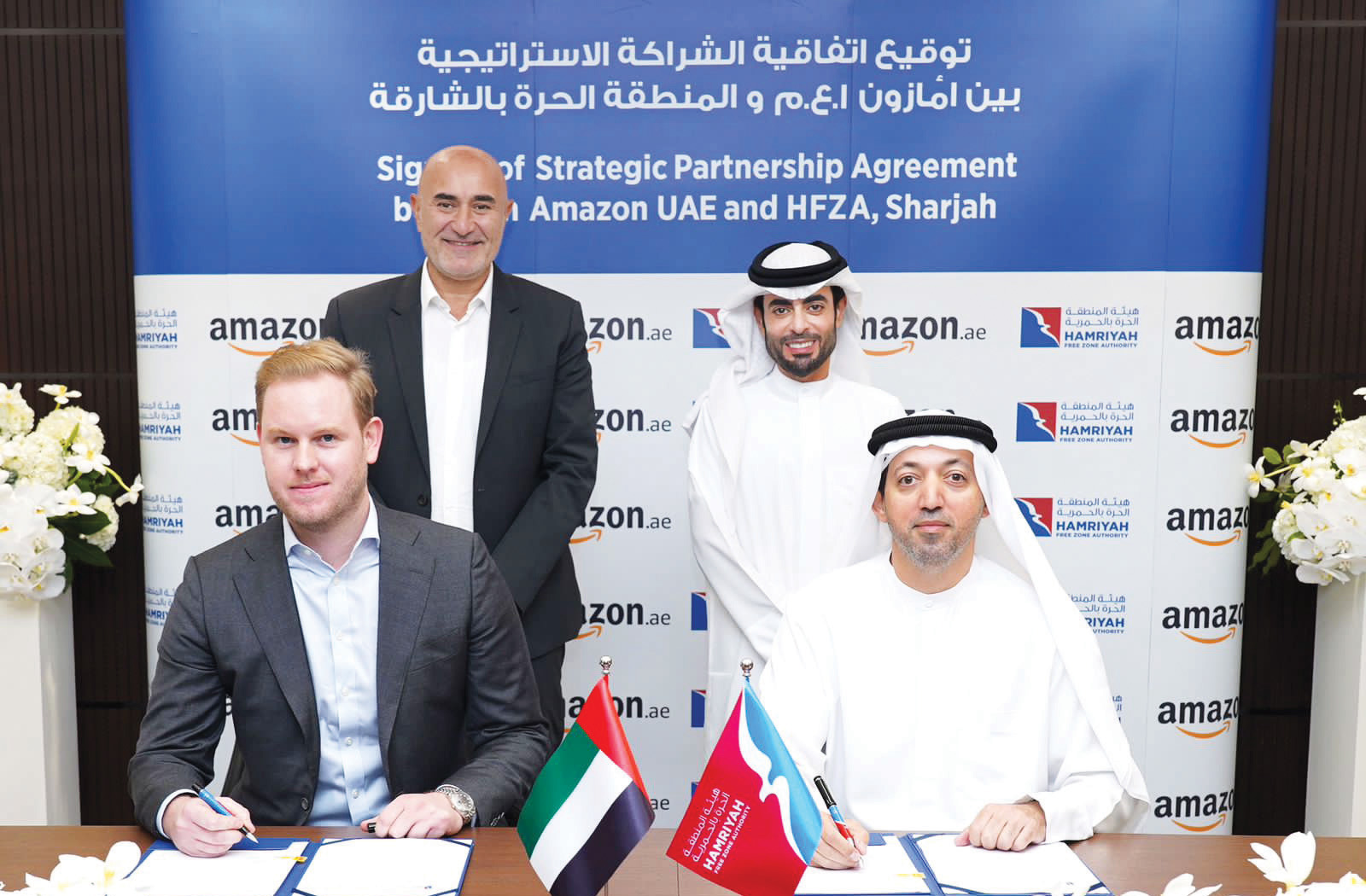 وقعت هيئة المنطقة الحرة بالحمرية اتفاقية تعاون استراتيجي مع أمازون الإمارات يتم بموجبها تأجير مركز لوجستي جديد لشركة أمازون، وذلك في إطار حرصها على تعزيز وتسريع خدمات التوصيل للعملاء في المناطق الشمالية، وتأتي الاتفاقية المبرمة تماشياً مع رؤية المنطقة الحرة بالحمرية الهادفة لتعزيز النمو والابتكار الاقتصادي في المنطقة وتعكس التزام أمازون وسعيها المستمر لتعزيز وجودها في جميع أنحاء الدولة.
